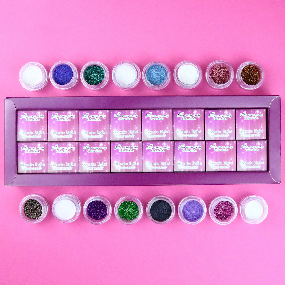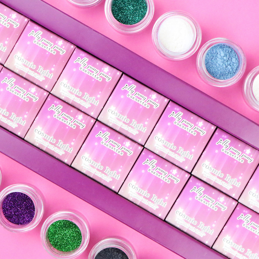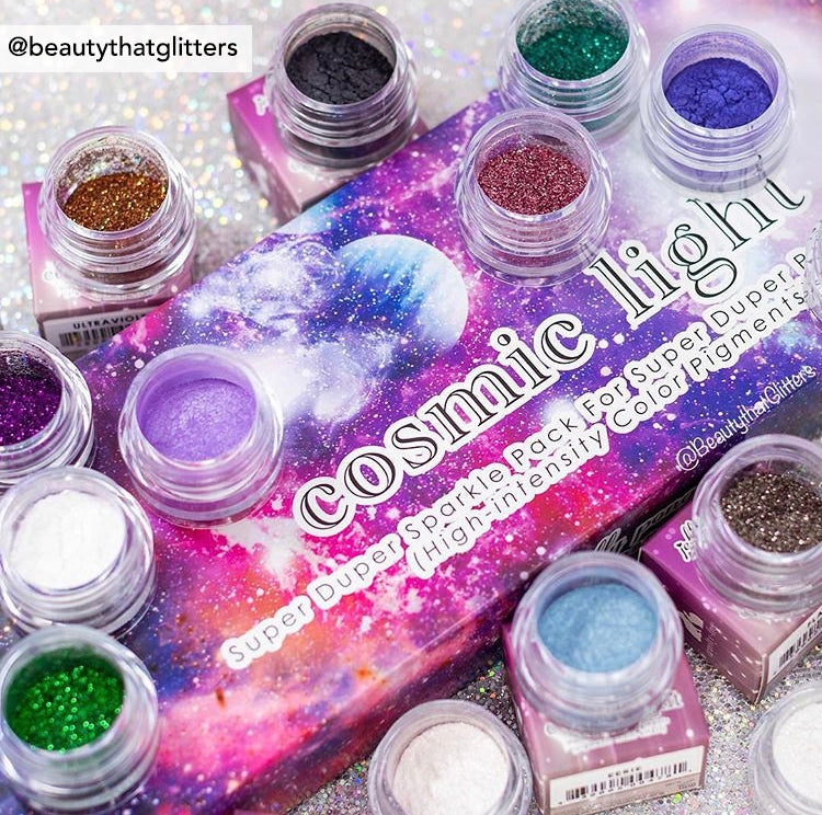 Revel in the eternal colors of this pigmented, star-powered sparkle pack containing all the shimmery magic of this universe. Light from afar is encapsulated within this box to deliver a stunning, flickering planetary show for your face, hair and body.
