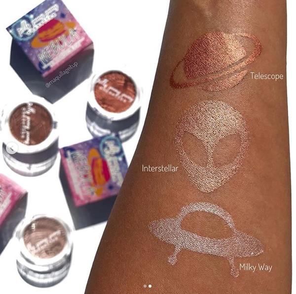 Experience long-lasting and hyper-intense shades like never before with our uniquely textured, foiled, spongy eyeshadows. Powered by Mimosa Bark & Noni Fruit extracts, a single swipe from this velvet-metallic formula is enough to give you jaw-dropping hues inspired by the hypnotic colors of interstellar galaxies. Combine it with water to transform it into a long-lasting liquid strobe. Formulated in a spectrum of light-shifting shades from solar-inspired golds to glamorous greens to intense gilded shimmers.